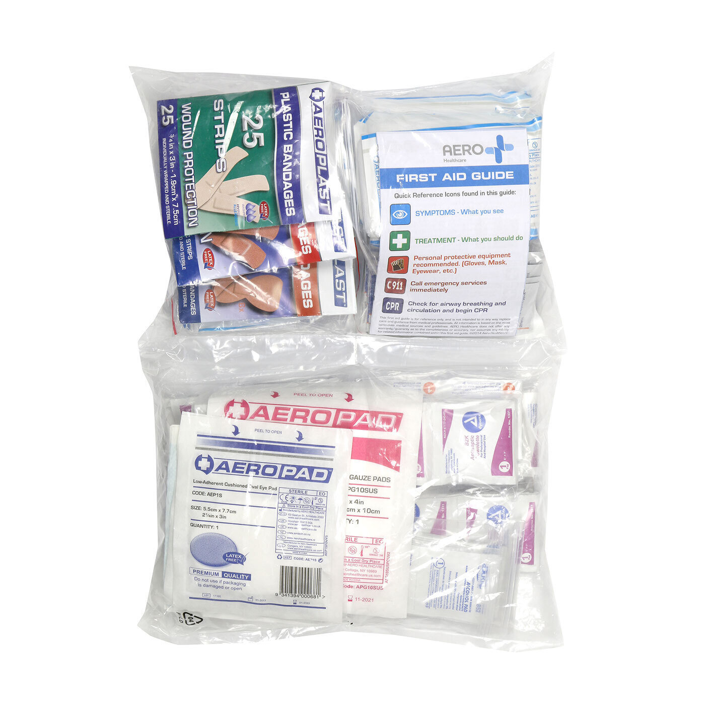 • The conveniently bagged "All-in-One" refill pouches replace the entire contents of the First Aid kit in one shot